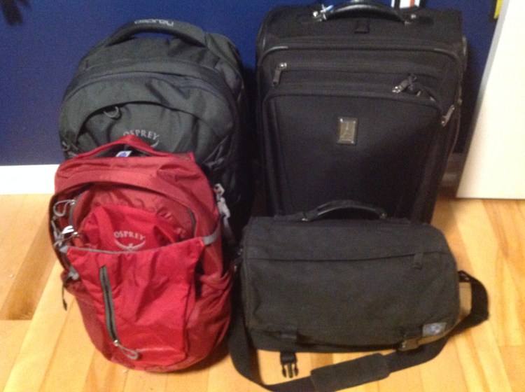 We have packed for carry on all only -for our 3 weeks adventure in Europe. All of us are seasoned travelers, so we should be fine. We are a group of 5 – Siri, David, Samara, Josiah, and Bob (Siri’s Dad). Some of us have bought new bags, Osprey 40 Farpoint/Fairview, and the Osprey daylitePlus for daytrips, and some have opted for their wheeled TravelPro and Eagle Creek handbag, wait for the reviews on which system works best.