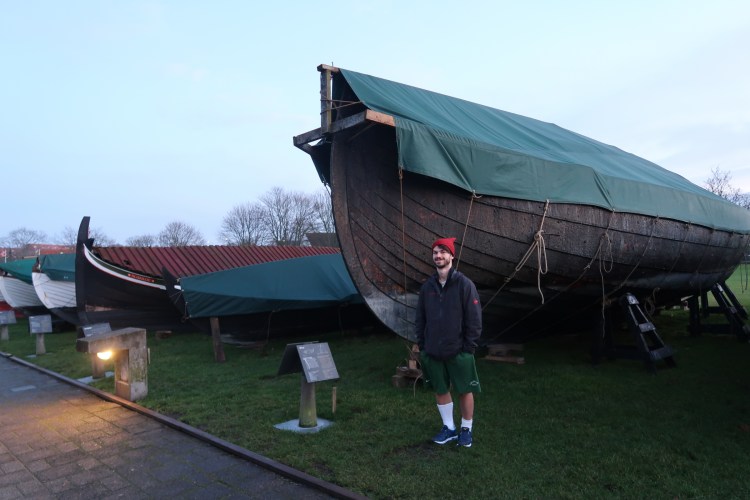 Josiah has been able to sail and row the merchant replica ship these past few months and on his blog, josiahabroad.com, he talks about taking these ships out for the winter, which is a full community event. You can see his ship below and one of the ships on the shore.
