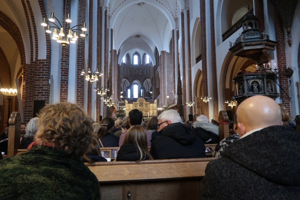 Marie was able to save us two pews just under the King’s box and across from the beautiful pipe organ. We sat in wonder at being part of the ongoing history of one of Denmark’s oldest churches where most of the Danish kings and queens are entombed. The youngest kids ran up and down the aisle as if it was just your local church and not this place rooted in history – which it is, since it is just five blocks from their house. We tried to follow the program of traditional Danish carols and then the reading from Luke. After the homily and listening to the choir, the large main King’s Doors were opened, which only happen once a year, at Christmas, and the congregation filed out back into the partly sunny and still cold morning.