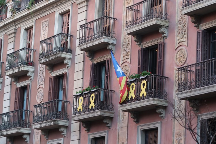 Paulo was our guide for the afternoon and he provided a great historical background of the city, the region and Spain. We got off the main pedestrian street and headed into the windy and easy to get lost in Old City as he crammed 2000 years of history in under three hours. Found out that Barcelona was settled by the poorer, lower class Roman soldiers, so their local language, Catalan, has the same Latin roots like Spanish today, but it came from a coarser version and so there are many words which have diverged. They are proud of this history and have even recently protested to be independent. Throughout the City, the yellow and red banded flag of Catalonia is flown proudly and a slightly modified version which includes a white star on a blue triangle on top is the flag for independence. These are also displayed proudly next to a yellow ribbon to signify their support of release of their inprisoned leaders who they call political prisoners and the state calls traitors.
