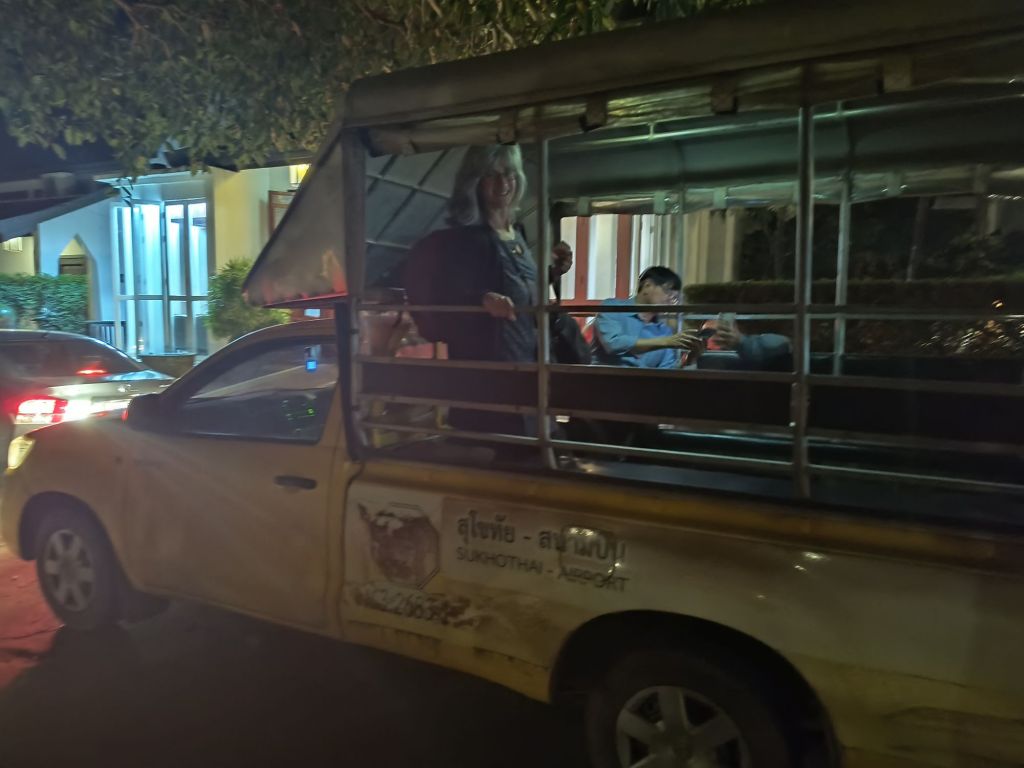 Day 2 – We have finally arrived at our first destination in Thailand – Sukhothai, a 1 hour plane ride north of Bangkok, around 6:30 pm (local time) after 3 flights and a ride in the back of a pickup truck from the airport.