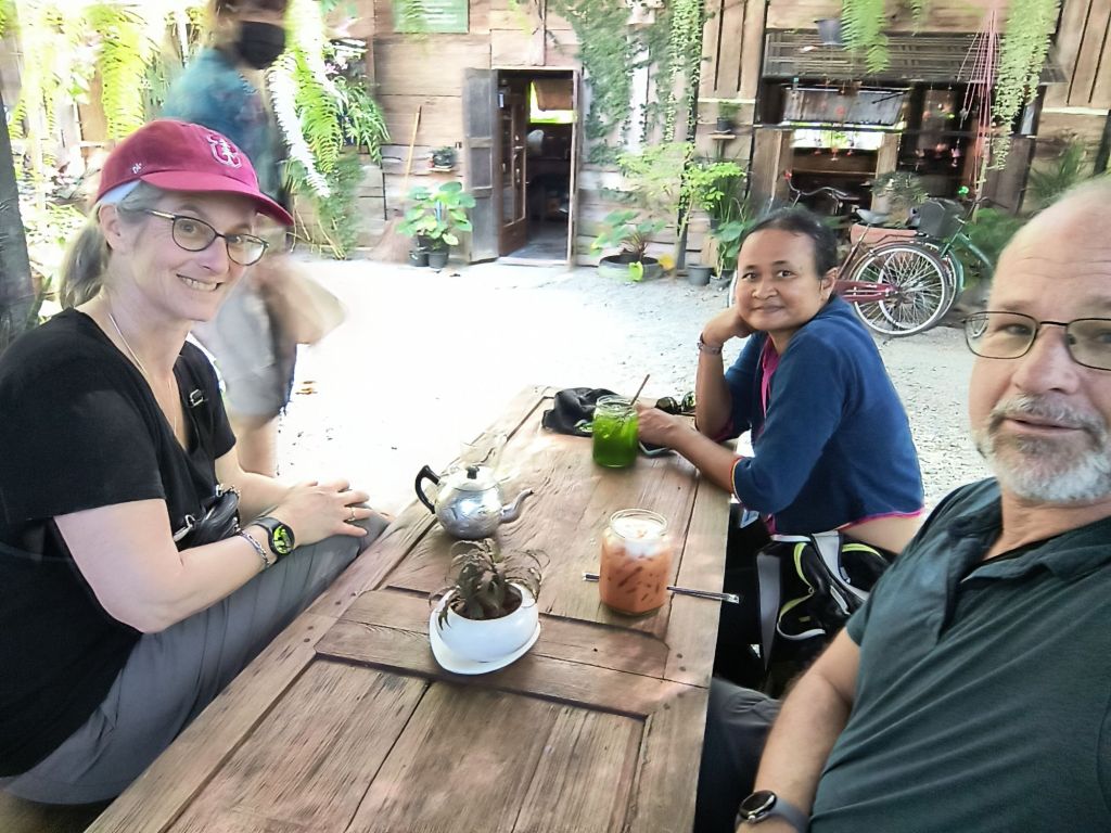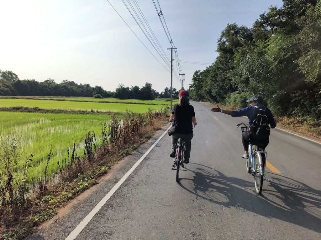 Just over coffee that morning, she was telling us that in general she would say that Thai people are fairly relaxed and don’t always follow rules if they don’t make sense. Like there was a rule to have a different license for a small and a large scooter, but this was changed because no one followed it. One time, Siri tells us, her own mother was pulled over by the police for not wearing a helmet while riding her scooter. Her mother informed the officer that she was just headed out to her work in her farm – and everyone knows no one wears helmets in the countryside (partly because there are no police officers there to enforce the rule). The officer thought about it a bit and then had to agree with her – he gave her a warning.