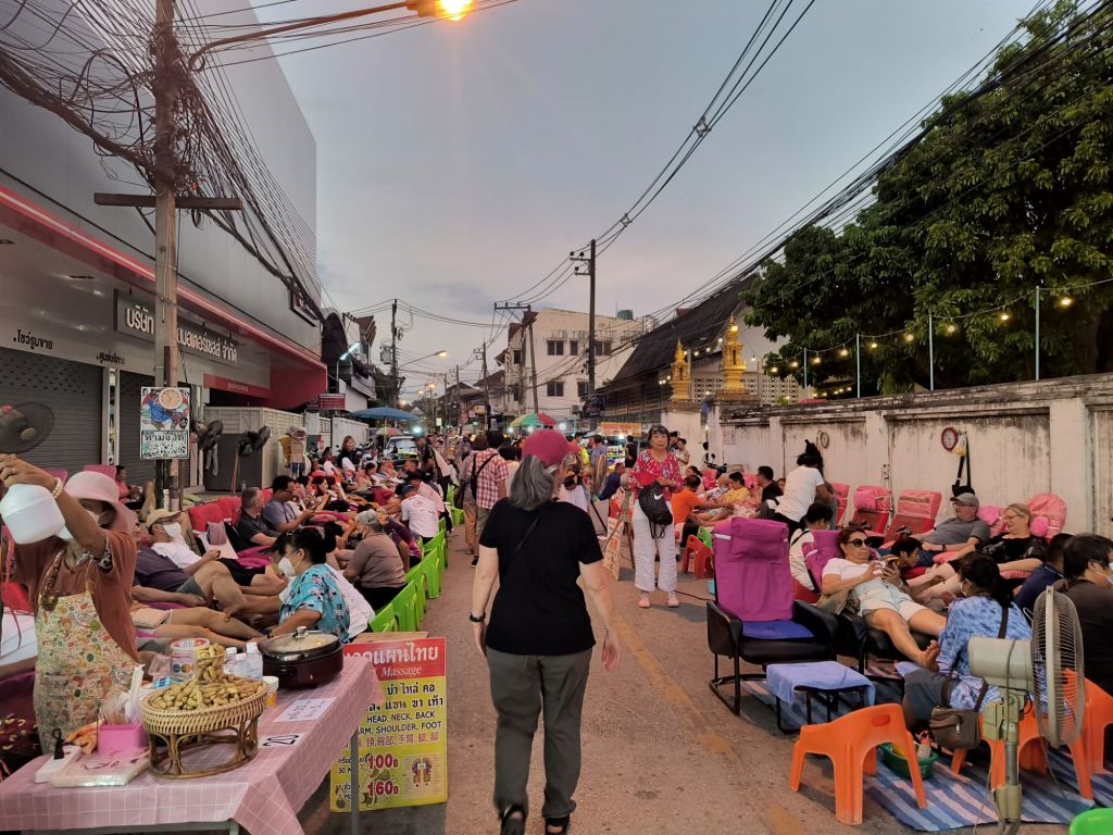 We feel like we have come from the village to he big city. Chiang Mai has LOTS of foreign tourists and there are hotels, bars, massage places – and of course still a large Buddhist temple – about every 50 feet.