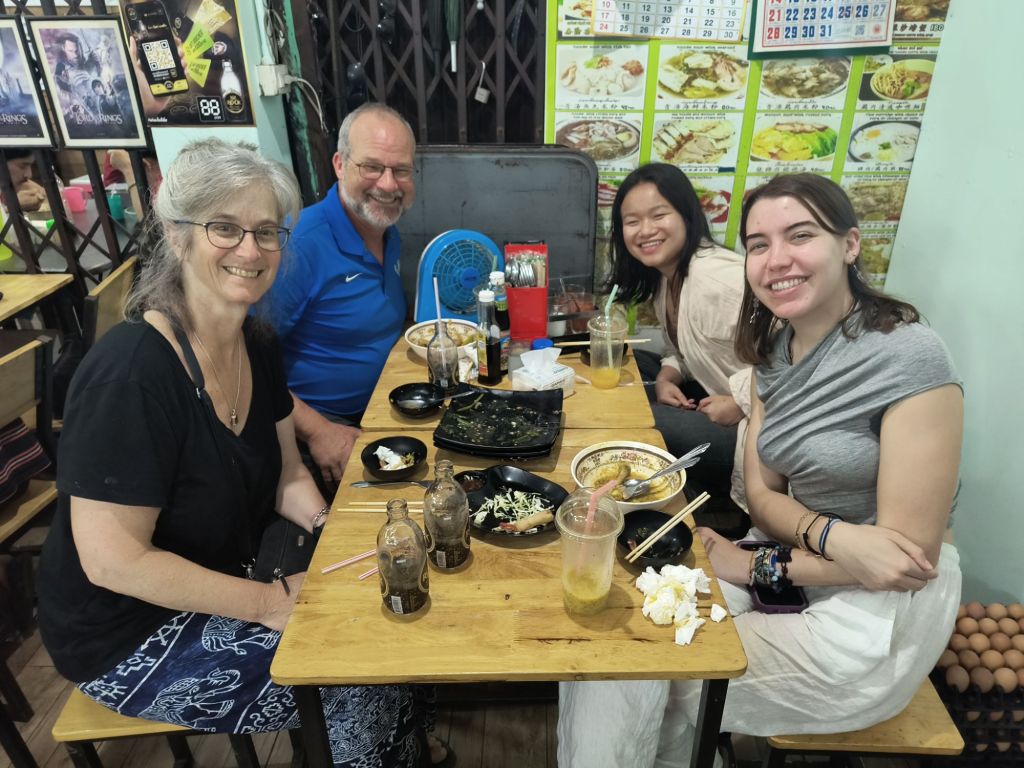 We met up for dinner with other VIA fellows (the same organization that I was in Indonesia with) who are advising Myanmar college students at a small university. A ground breaking college program that originally was going to be built in Myanmar, but due to the recent 2021 coup the leader moved it to neighboring Thailand and they are actually conducting classes online. The students gather around education hubs at the border for housing and Internet access and try to avoid being conscripted by the military or having their families killed by the current regime. Pretty heavy stuff for these recent US grads to be dealing with every day. The fellows are an energetic and passionate group dedicated to helping out these refugees. Both signed on for a second year of their fellowship.