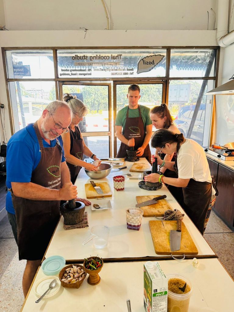 Being the foodie place in Thailand, we had to try our hand at cooking. Siri chooses one of the few dozens available because it seems like it will be a small intimate affair – and it does not disappoint.