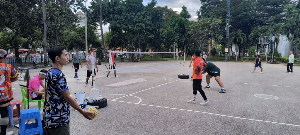 We start our mornings with a typical walk, this time it is around the moat – think of green lake, just with a 3 lane highway next to you. We did stop at one of the few public parks and it was a sea of activity – one of those great public places. People jogging around the small park, others actually using the work out equipment on the trail, a group of backpackers (?) have already put up their slack lines and are doing yoga in shifts. There is a group of 20, all ages, learning some martial arts. The newest addition on this day is a group playing “foot volleyball” or Sepak Takraw, a national Thai sport. It is 3 v 3, can use anything but the hands and is played with a ball just bigger than a softball. Pretty amazing to see someone doing a bicycle kick for the spike – and then keep doing it each time. We feel like we have found the mixing place of locals and foreigners.