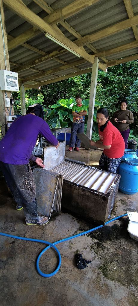This field trip is the idea from our main local guide Top, who grew up in Bangkok. We learned a bit more about him last night, that he has been a guide for almost 10 years. When Covid wiped out tourism, he started selling those sweet potatoes, that we just passed yesterday, door-to-door via social media and a WhatsApp group. He tells us that his best customers were weight conscious women.
