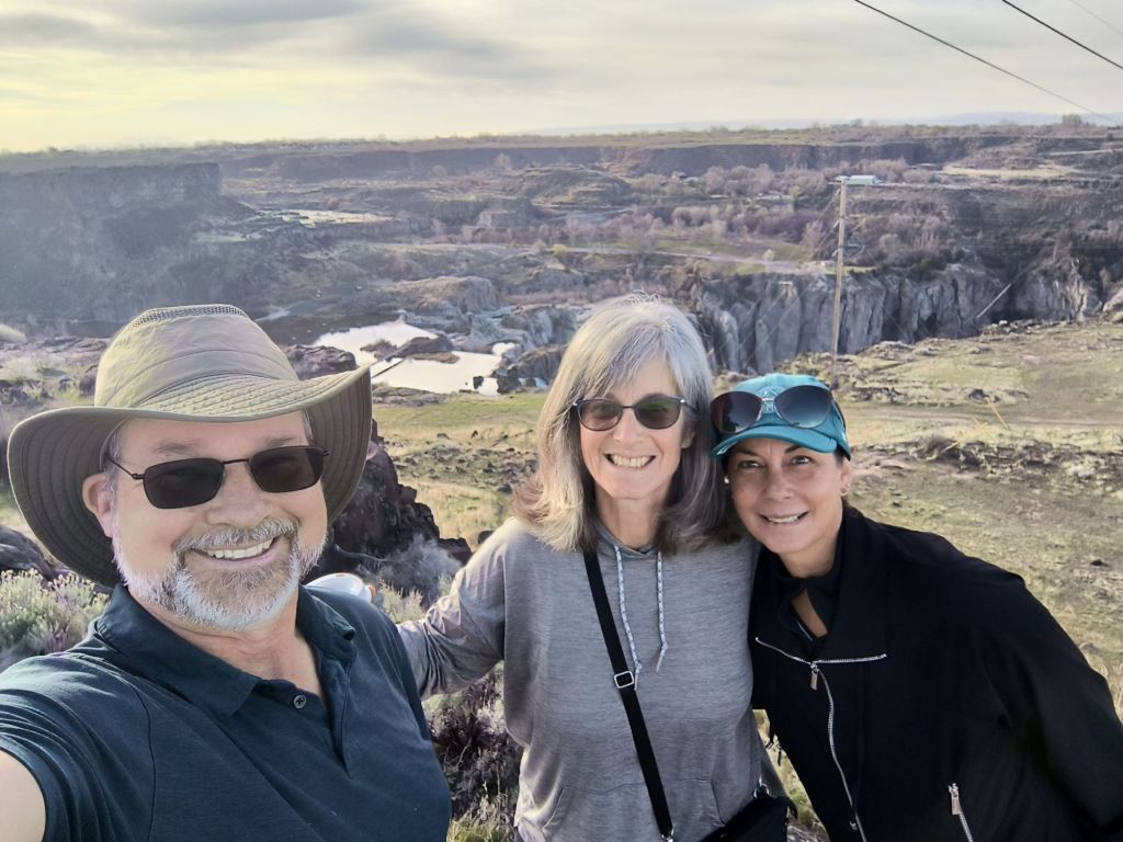 We started the day trying to get a view of Shoshone Falls, and due to construction closing the normal viewpoint, we take a Google map induced detour and end up on a dirt trail getting a small peek-a-boo view. We meet up with Kayla from Colorado Springs who is only a bit younger than us, and hear her story.