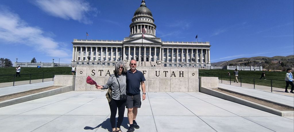 We are looking for signs as well. Hopefully better than all the billboards as you enter Salt Lake City. We make it to the capitol where it seems every family is outside having a picnic and all the school children are inside taking tours of the Capitol. We wish we could stay just a bit longer, but we have a few more miles to go before we sleep.