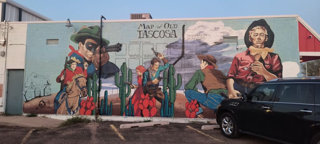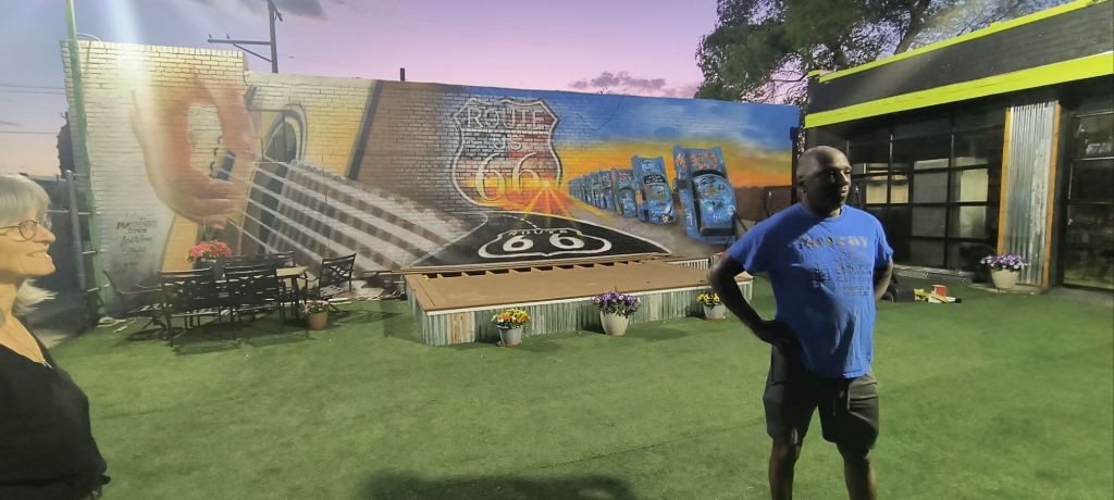 We make plans to go line dancing at a place called “Guitars and Cadillacs” (seemed appropriate) with the Germans, who inform us that it is the name of a popular line dance song. We get cleaned up and head out. When we arrive, we are the only ones in the parking lot. We find out it is actually just a college hangout and dancing starts way too late for us travellers. Siri and I head out instead to stroll historic sixth street where there is live music playing and quite the party for a Wednesday night. One owner, who has just converted his detailing business into another live music venue, tells us that there is more happening on this street than anything in downtown Amarillo.