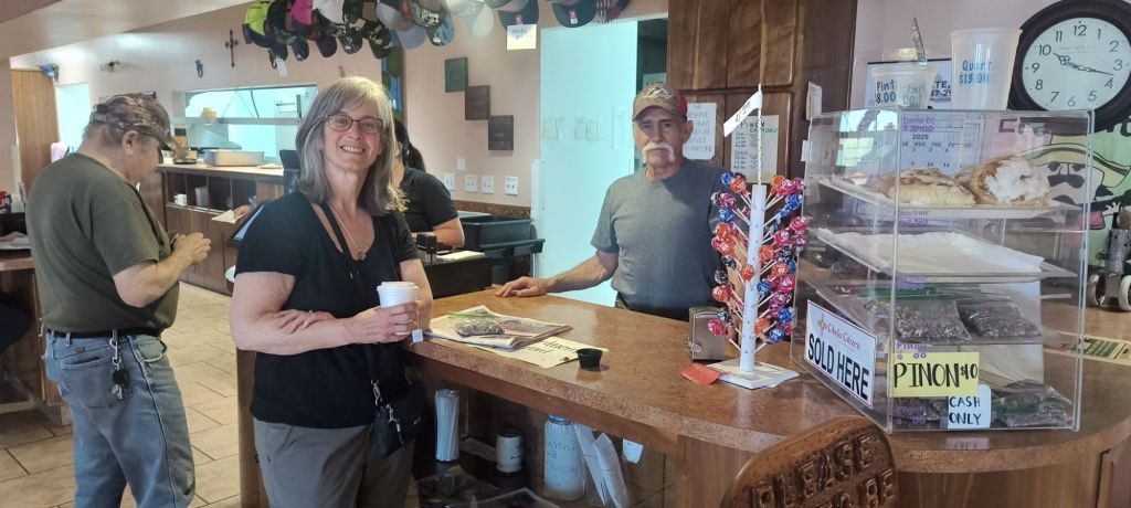 We talk with the owner, Larry, at the counter and find out he is a fifth generation rancher. “Well, my wife is the real owner of this place.” He tells us proudly. He has over 50 head of cattle on his 1,000 and 2,500 acre ranches. “That is all the land can support here”.