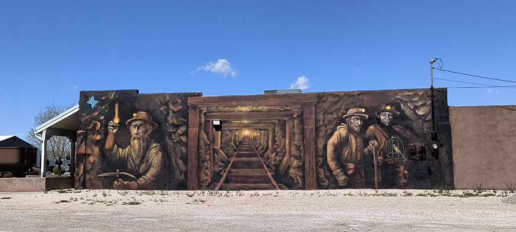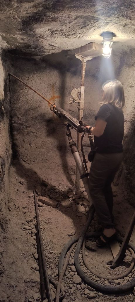 Our next stop is the New Mexico Mining Museum which has a replica of a uranium mine underground. We take the miner’s elevator down to “M* for mine and it feels like we are transported – to rail cars, active mining equipment, and even the employee lunch room. As we go back up to “S” for surface, the main museum provides a great history of the area and how uranium in 1950’s was like the gold rush of the 1850’s.