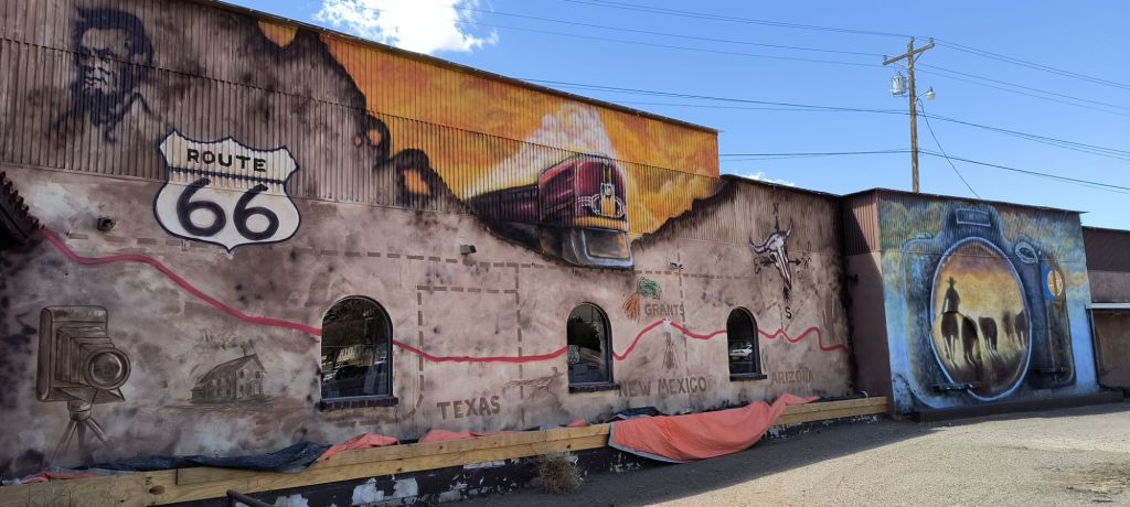 After checking out the murals and the muffler man in Gallup, NM, we head back on the road and stop at Grants, NM for breakfast.