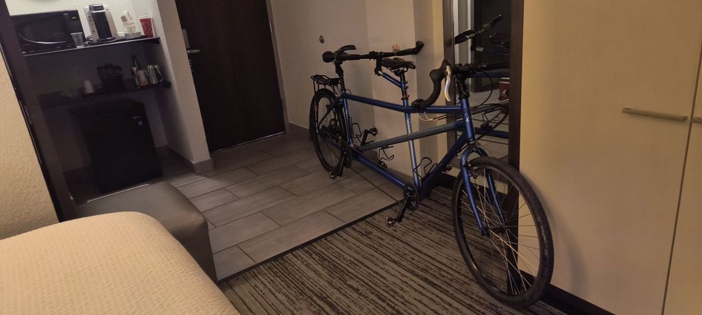 We leave the newlyweds alone and head back to our place. The bike comes off the car and since we aren’t sure if it will fit in the elevator, we have to use the fire exit stairs. Glad we are only on the second floor.