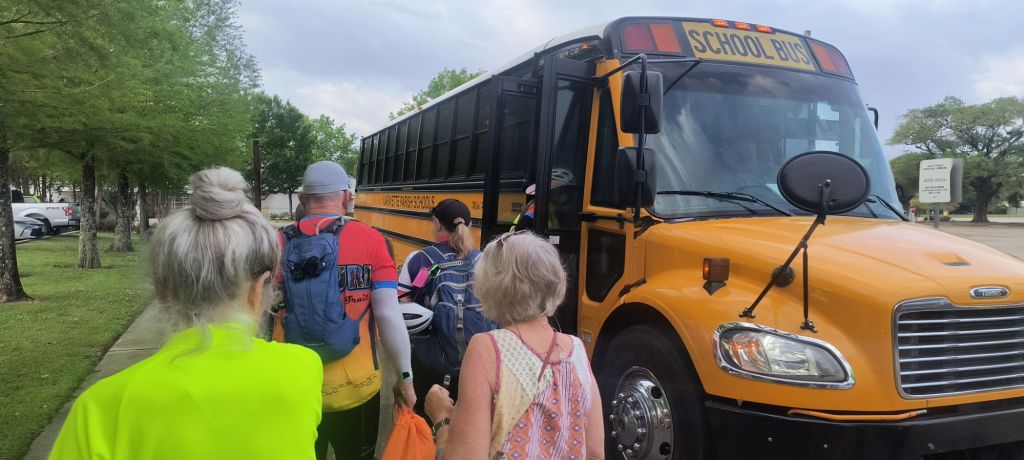 We finish our ride at St. Bernard Catholic school at Breaux Bridge. We find out that Cycle Zydeco is always the week after Easter because the school is on break, which allows them to use the grounds for camping, dancing, and food. They even borrow the school busses for shuttles each day. A pretty good partnership.