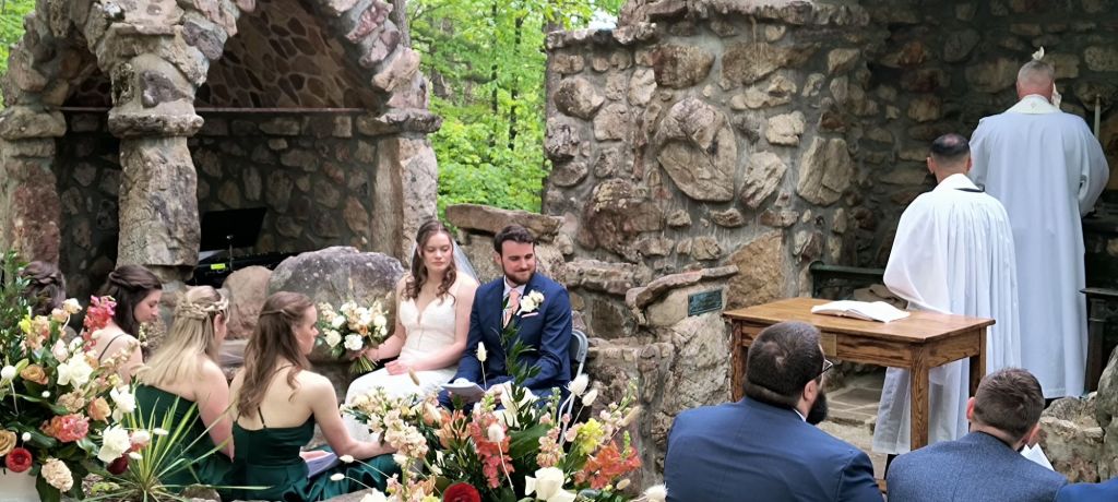 We find out that our niece spent many summers at Shrinemont and that it is generational love for this place going back to her grandfather. It is a special place and the wedding takes place in the beautiful open air Shrine. The Shrine, as we are told by a few long timers, is the official cathedral of the episcopal diocese, which makes it the tallest cathedral in the world. It is a good line.