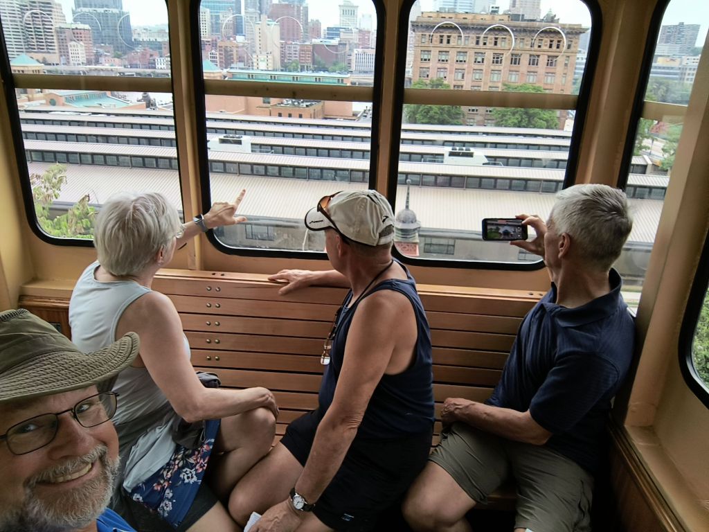 The next morning David takes a much needed day off after first finding a bike shop that will attempt to clean and repair his bike for tomorrow’s ride. Mike and Siri check out the views after climbing 500 Church steps while I rest my sore foot (plantar fasciitis has sidelined me a bit).