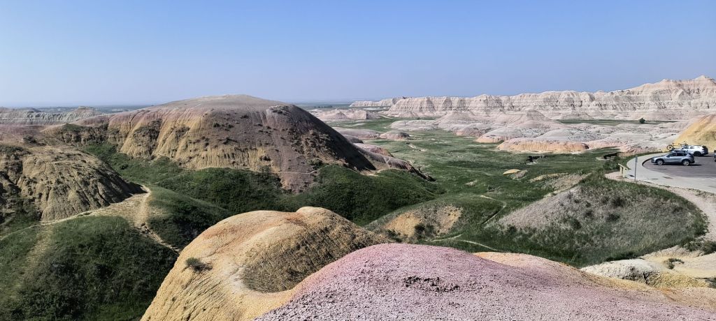 After leaving friends in Chicago (much later than planned, but better to have stayed for an amazing lunch) we headed West through Wisconsin, Minnesota and then finally to South Dakota. Along the way we visited another state Capitol (Madison, Wisconsin seems to be a bustling city) caught up with Siri’s former school superintendent in Sioux Falls, South Dakota (need to return sometime and actually see the falls), stopped in at the infamous (?) world’s only Corn Palace (think of a Midwest Old Opry decorated with corn murals) and then made it to the Badlands National Park.