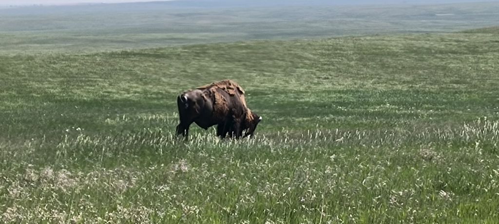 The next morning in Badlands National Park we head out on the Loop Road – which is really not a loop – and find lots of prairie dogs and bison (!). Badlands has the second largest herd of bison, next to Yellowstone. We stop at each look out to take more rock photos – look red ones! Now yellow! Blue AND purple! We couldnt get enough. We even stop at the Paleontologist lab that has real paleontologists working with 32 million year-old fossils (!) – just like we found yesterday. We could have stayed here for a few days, but alas we must keep on moving.