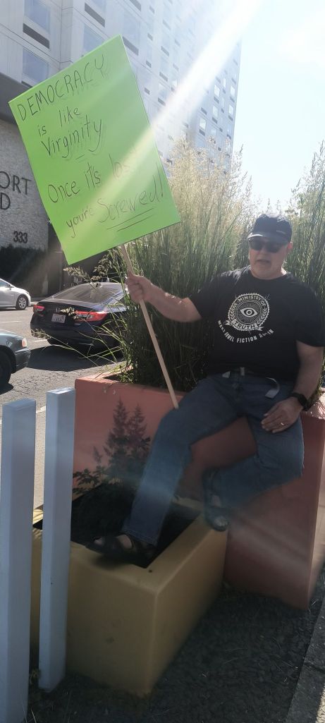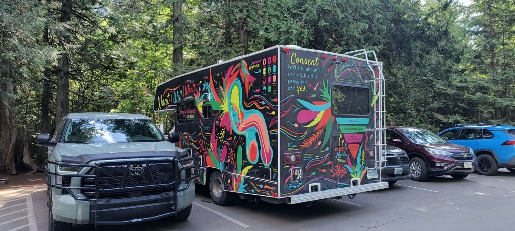 We had planned on staying with a college friend on Flathead Lake, but she wasn’t able to make it, so we decide to just keep driving all the way home – since it is so close. 😉 We stop in for a No Kings protest in Kalispell for lunch and then catch the end of one in Spokane by dinner. Had a lovely chat with one of the organizers in Kalispell who is there with her grandson. She tells us there were a few earlier arrests as the counter protests who are literally in hoods created a ruckus. An elderly couple leaving Spokane tells us how hopeful they are to see so many people out defending their rights.