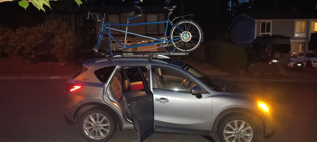 Times tandem bike came off the car: at least 45 times (and three times taking it up an elevator to our room – otherwise it was the stairs)