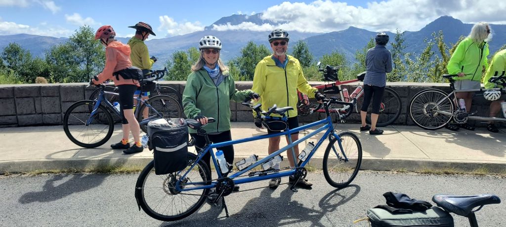 Some tandem bike friends of ours had talked about this being the most exhilarating part of their whole trip. They didn’t use their brakes and topped out at 52 miles an hour! I am not so brave and don’t trust my brakes – even with callipers and a disc brake. I think we make it to about 35 miles an hour downhill and a few bikers still pass us. The views are amazing (when I can put my head up from the road) and the devastation from the 1980 blast is still evident. The Tuttle river and valley is filled with a few hundred feet of mud left over from the explosion.