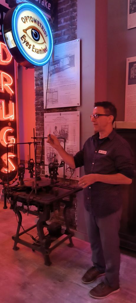We finish our ride at the National Neon Museum. We enjoy an energetic tour by the founder and his wife who have been collectors since they were teens. They now have expanded into other areas, like refurbishing an old-time carousel and the classic wooden horses.