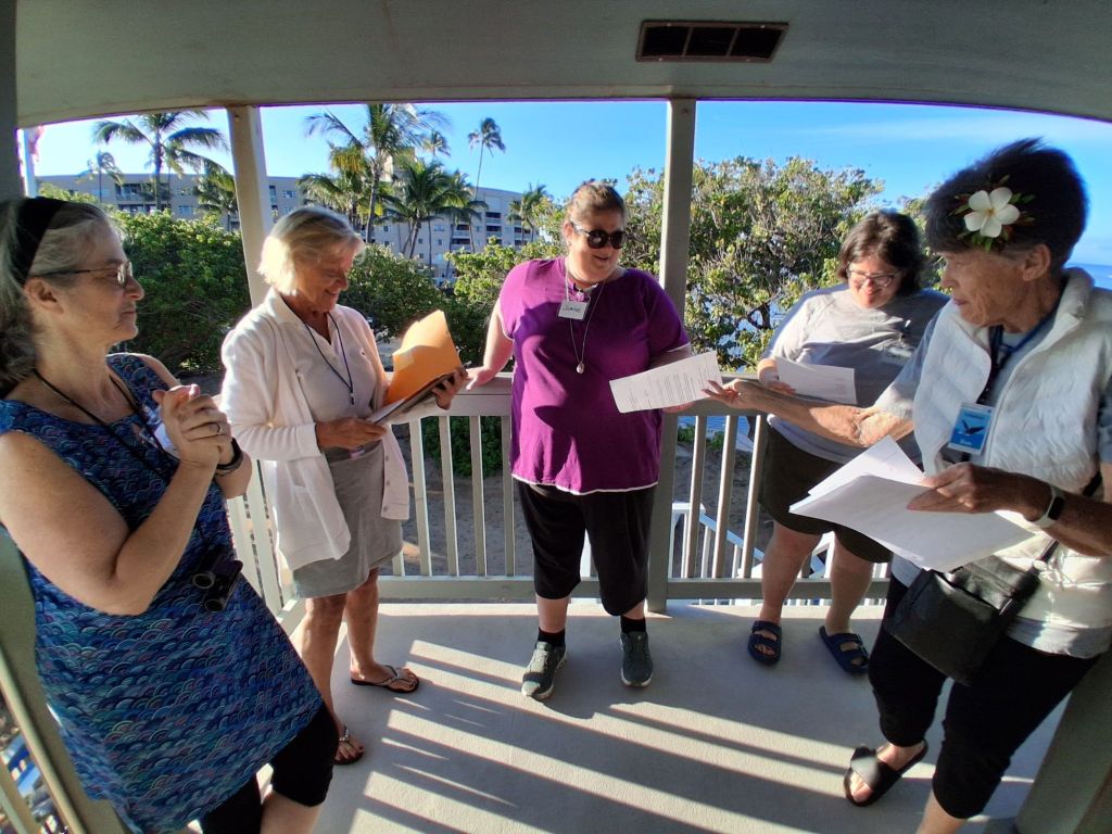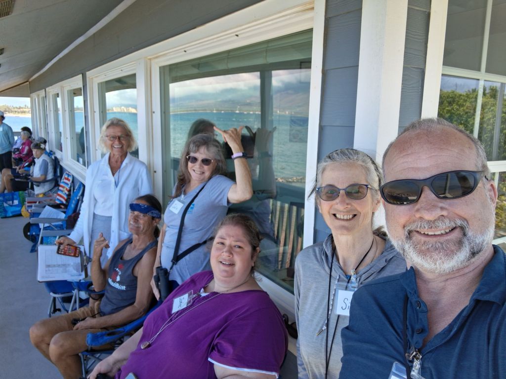 We woke up before the sun at 6 am and were out the door at 7 am to arrive at our site, the humpback whale center just before 8 am for final training and instructions.  Sue, the group leader with over 20 years of experience and  Ursula the more recent transplant from Michigan, walked us through the schedule and expectations.  We had all read the 7-page handout (which caused some anxiety amongst our friends – will I be able to tell the difference between a tail slap and a peduncle throw?)  We found out we were the eyes for the group leaders to actually tally our results.  Whew! There is going to be some quality control here.