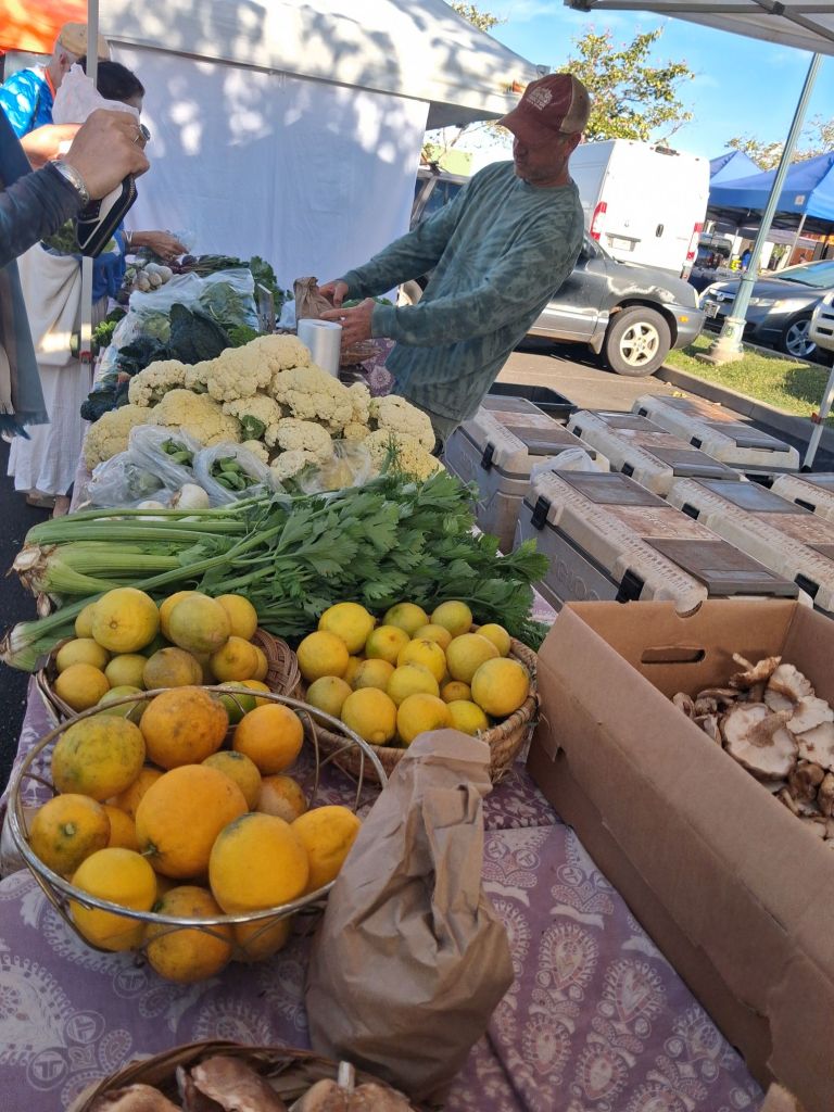 Our first stop, at 3500 feet, is the Kula Farmer’s Market. We had been told about this just yesterday as we talked to a local artist at Wailuku First Fridays (another story). It is this farmer’s market that we wished we had known about earlier. Really fresh produce from several vendors. Lot of small businesses selling their wares as well from jewelry to clothing, to flowers and woodworking. The best thing is that it all felt very local – that all the vendors were small, most likely the owner is taking your cash. Since we were going to be on the road for the day in a hot car, we only picked up some fruit we had never tried before – an ice cream bean and a star apple. Both are supposed to taste amazing – we will tell you when we eat them.