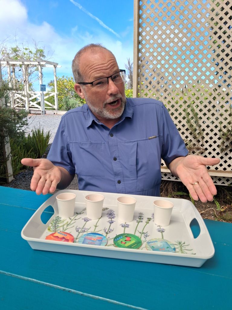 We then head to the Kula Tea plantation even higher up the mountain. We skip the tour but enjoy hearing the recent history of this farm from our pourer. We enjoy a wonderdul flight of teas – hibiscus was our favorite.