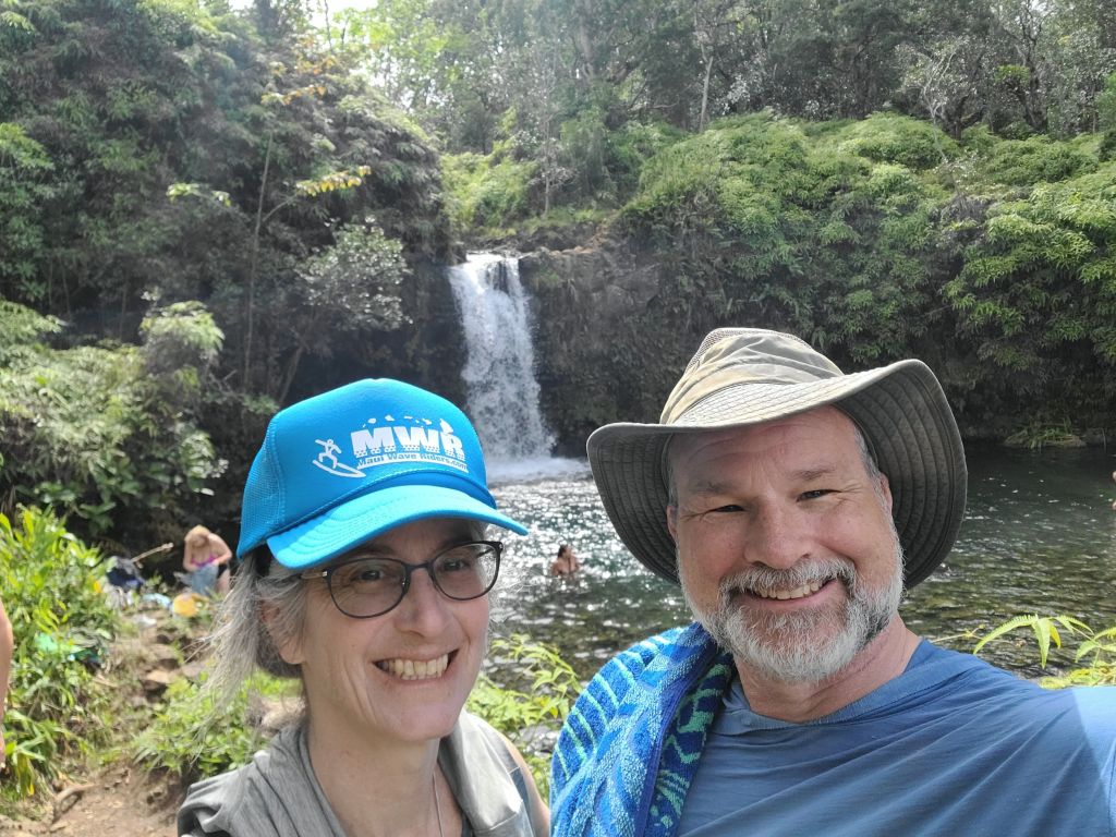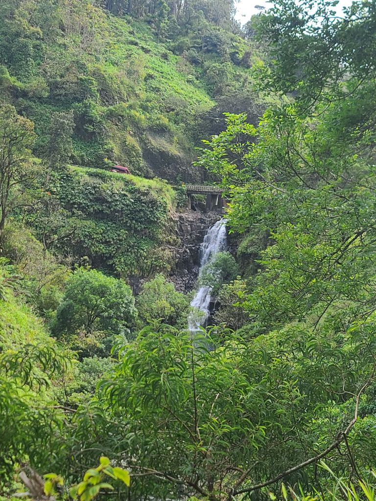 We were on the road at 6:30 am with enough food, water and supplies to last for days – can’t be too prepared. Siri was behind the wheel as we started into the one lane forever curvy sections. This section of Maui was so different from other parts we had seen. It was lush and green trees and vines growing everywhere, waterfalls at each canyon we passed through and so many stops you could be on this road for days just taking in the breathtaking scenery. At time I wondered who decided to pave this path through the dense jungle.