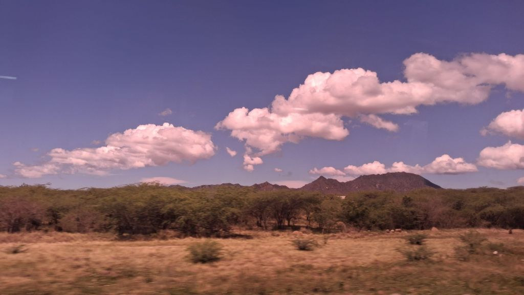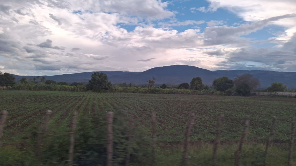 We have the ocean on our left and mountain ranges on our right. Soon we will turn inland and move into the drier irrigated lands that grow rice and beans. We pass our first cactus and then dirt fields replace the banana plantations.