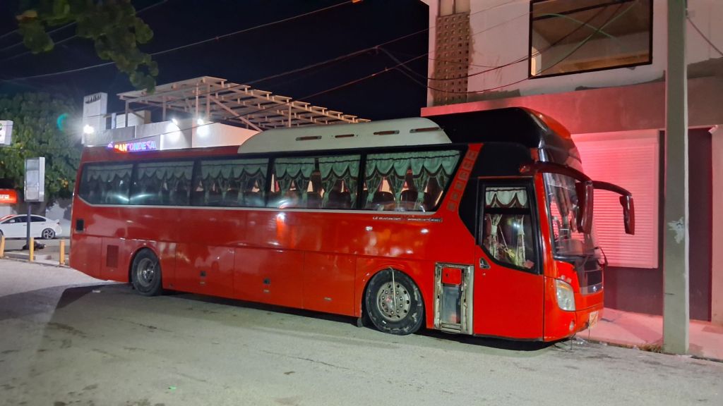This air conditioned bus – with a bathroom (!) – was not the way we used to make this trip. It used to be an old small bus or just a large minivan – that wouldnt leave the station until every seat was full. Now it feels like being on Greyhound. We made reservations last night, people lined up (no mad dash for the doors to open), and we left on-time. And it is air-conditioned – did I already mention that?