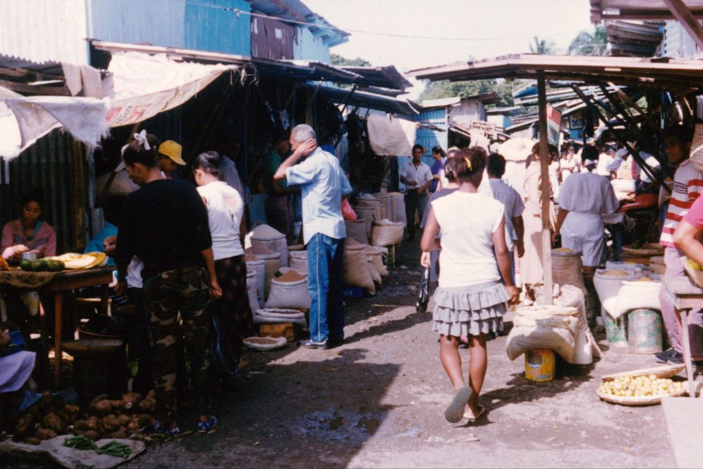 Adjacent to the outdoor market is high-end supermarket with a parking lot and air conditioning. We can hear a few fruit vendors trying to entice those walking in to come to their outdoor stand instead to get a better price. Interesting dichotomies of class, wealth, and race playing out all around us.