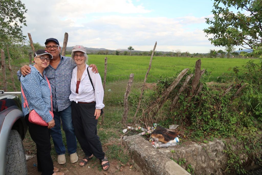 We head down the familiar one -lane dirt roads, past the (now cement) irrigation canal, and in between the barb-wire fences, we stop at Fefen’s 20 acres of fields. We ask and get a quick lesson on farming – he now uses machines that will do the work in a few hours which used to take several people two weeks. He still employes a few workers – mainly the Haitian immigrants (similar to the US in use of immigrant labor) and pays the equivalent to $12 per day. One problem, of many, is that there isn’t enough regular work every day, so it is very hard to live on these wages. Fefen, for his part, tells us that is not a good time to be a rice farmer. The government controls the price and it hasn’t kept up with the costs. He tell us that is was better when Danilo was president.