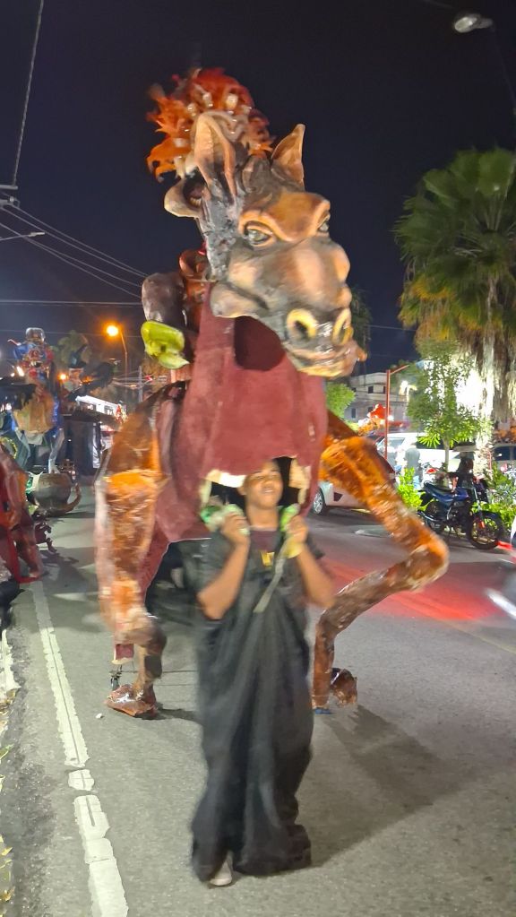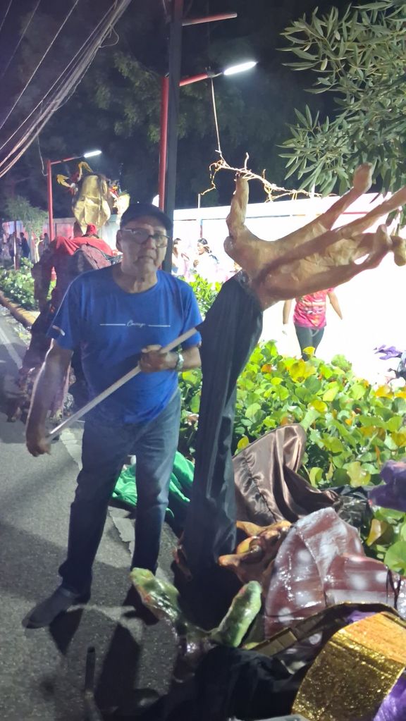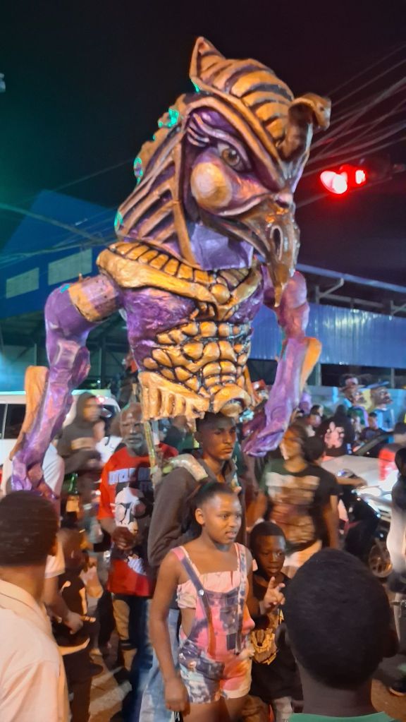 Last night we did make it out to the festival – a bit too late to see the parade (Rivin said she really doesn’t like crowds and now her story puts that in context), but still with enough time to see the amazing costumes and the music acts. We settle on a bench to see Sergio Vargas – a meringue legend from the 80’s and 90’s. We find out later that while Rivin is a big fan, Fefen is not.