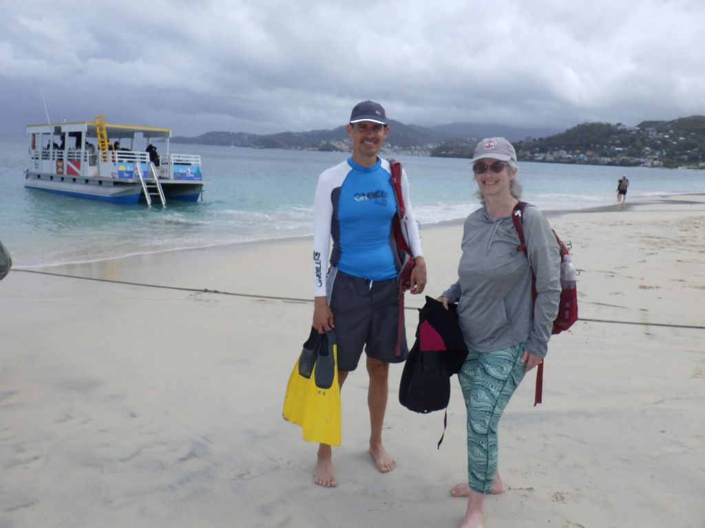 We are tired, smiling and sharing what treasures, fish, and coral we saw with our new acquaintances. Even on this boat, we have people from several different countries all enjoying this laid back life of Grenada. One is a Canadian who came and never really left – he lives here half of the year. I can see how that would happen. 🙂