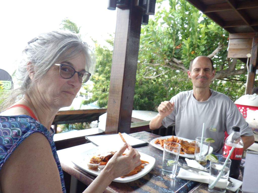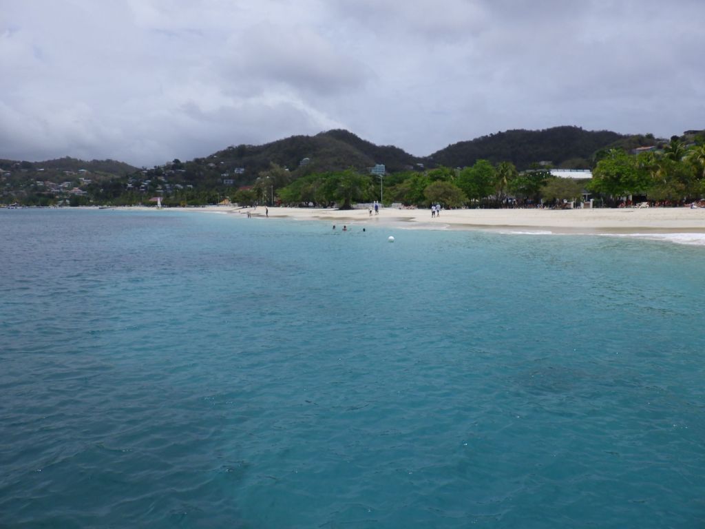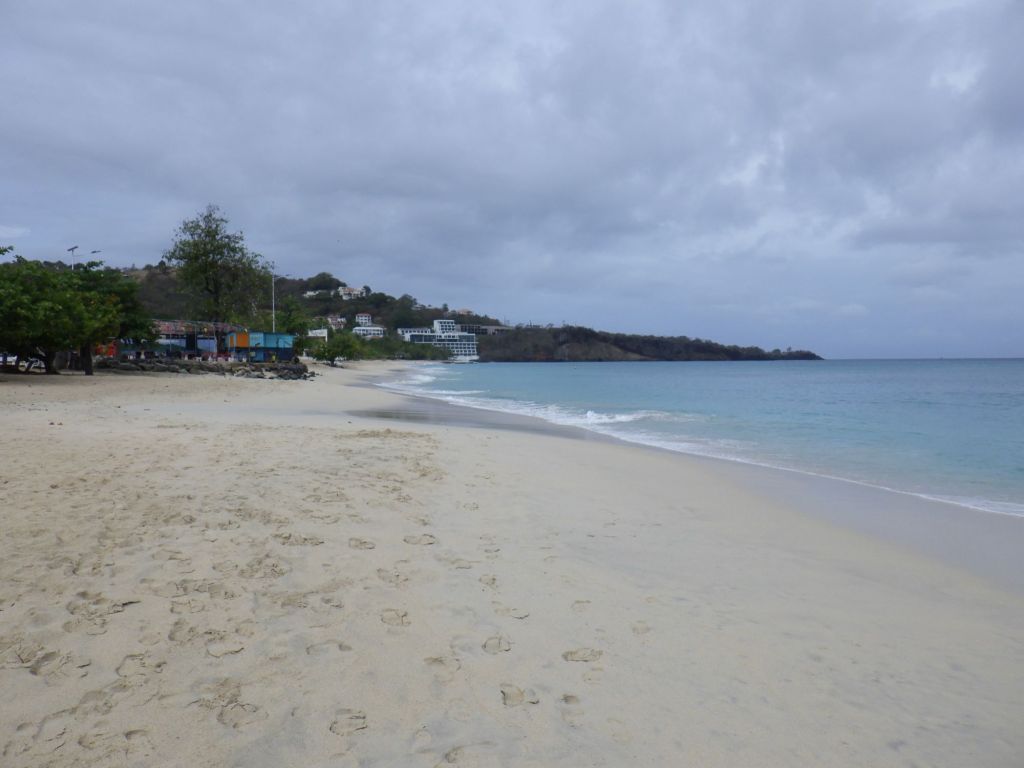 On the main tourist beach, Grand Anse (‘ants’) which is an idyllic one+ mile white sandy beach with clear tourquise water, Siri strikes up a conversation with a woman who has brought her cell phone into the gently rolling surf. We are impressed that she is taking selfies and seems to be having a zoom call as well while it stays just above the water. We soon find out she is from Brooklyn, and now lives in Charlotte. Her grandmother (who she is visting) and her father are native Grenadians. Her mother is from St. Lucia, which she tells us is not as nice (just don’t tell her mom!).