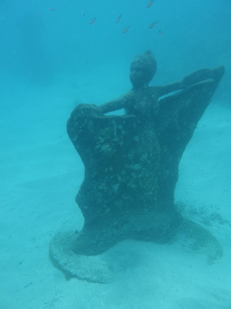 I really enjoyed seeing the local culture and other stories represented underwater. They ranged from a single dancer swinging her dress, to a cirle of locals holding hands, to a march of people dressed for carnival. It was a fun treasure hunt and was gratifying to see the new coral and fish using it as habitat. Our tour guide said his hope was that in 20-30 years it would be completely covered in coral. “How will it look then?” He asks, “We will let nature do its part. Nature will be the final sculptor and architect.”