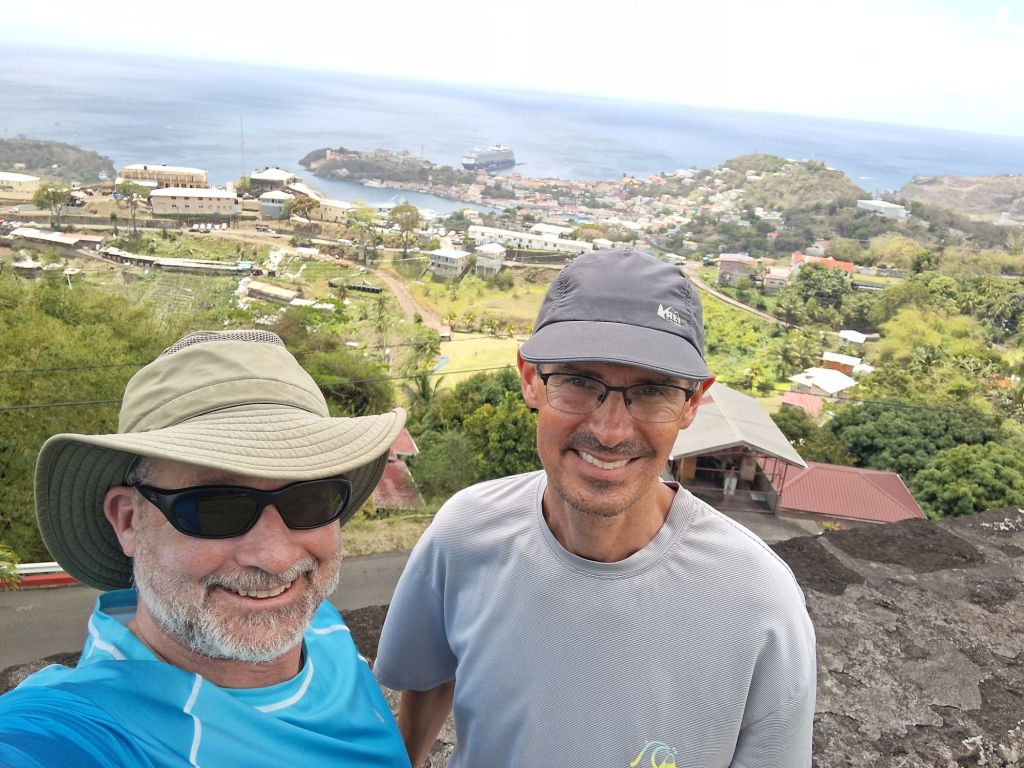 We enjoyed exploring the 1780 forts that have been well resotored and, since they were forts, had commanding views of the harbor. Small story, they were built by the French after they had successfully captured the island from the British in a surpise attack from land. But, within just a few years, the Brits got it back (with some nice new forts) in the Treaty of Versailles in 1783, which also gave the US independece.
