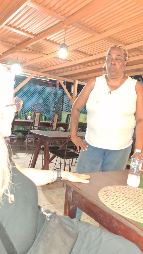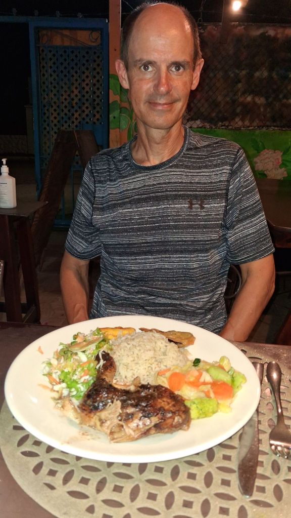 Mom, or Karen, comes by and we find out she is also a local who returned, from New York, about 20 years ago and now owns this small place. We interpret, through what is a thick Caribbean, English and some other accents combined, that her secret is to simmer the chicken in the right spices and then leave the house and forget about it. After 2 hours or more, it should be ready. We may have to try that technique – just with some supervision.
