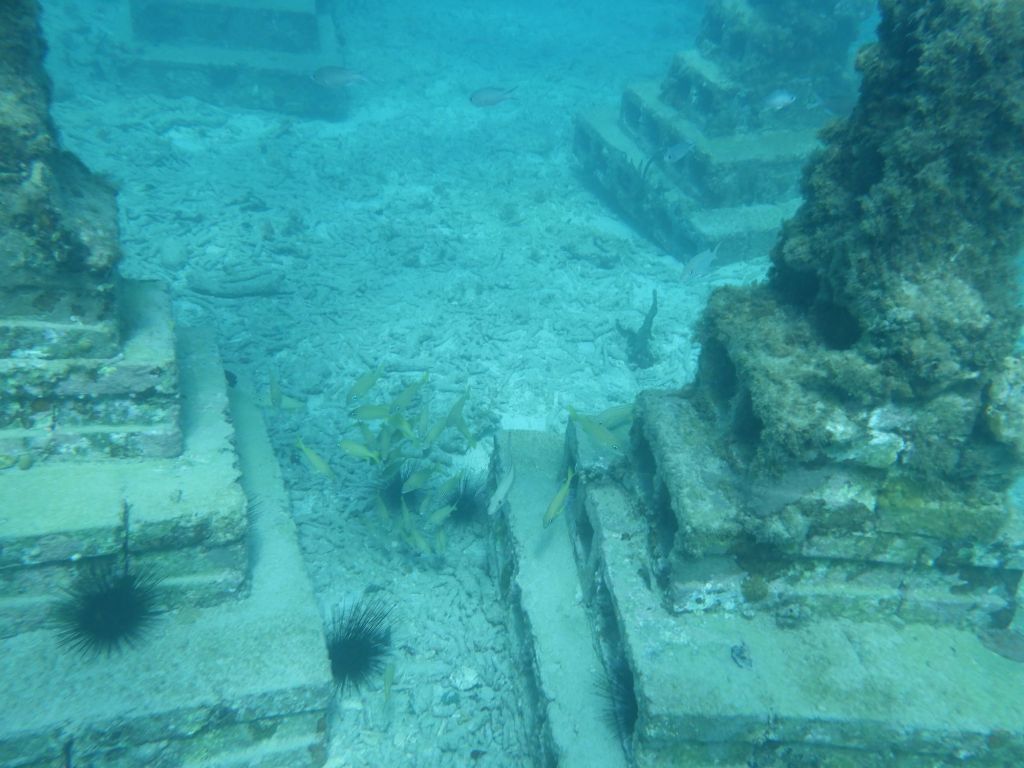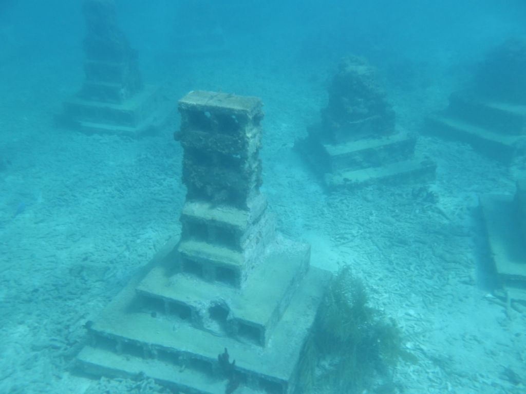 It was finally hot enough to don the snorkel and fins and head to what I (misunderstood) heard was another underwater sculpture park. It was more of like asking a two-year-old to make something with duplos. Yes, there were more fish around and yes, it was interesting to ‘find’ things underwater, but it wasn’t the carnival dancers.