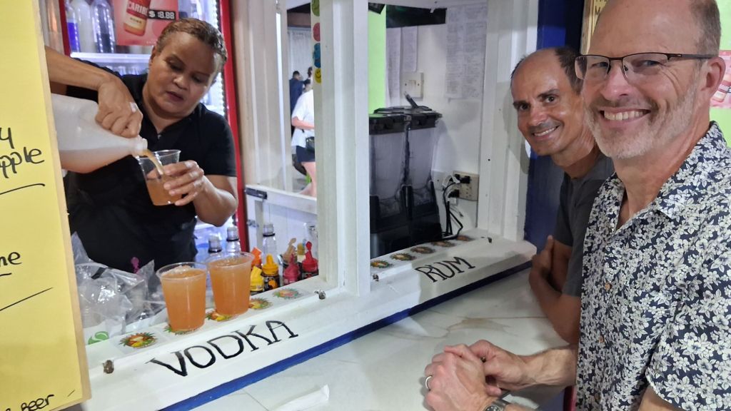 As midnight approaches at the end of our first full day in Barbados, we are chatting with two 70-year-old englishmen over mojitos and local beers at the back of the ‘car bar’ – a cuban run converted van that has its back doors open up to a full bar, and the kitchen has taken over the driver’s seat. We find out from our new friends that this van has expanded since they started visiting 10 years ago. “There was none of this,” he says pointing to the metal roof and lights that extend out the back of the van and now take over the whole sidewalk.