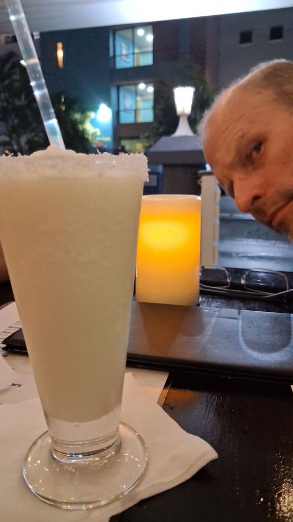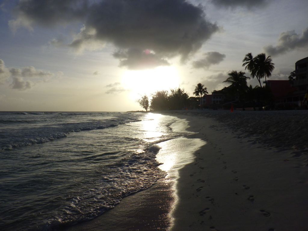 The view from our condo in St. Lawrence Gap on Dover Beach – about 5 miles East of downtown Bridgetown, the capitolWalking through the cafes, bars and restaurants near our place in St. Lawrence Gap. Jay has now joined us after a delayed flight got him in a little before midnight – and he still wanted to check out the night scene.Morning and evening walks along the beachDover Beach – you can rent two chairs and an umbrella for $15 US.Our first sunsetFirst stop of fhe day was a nature reserve and surprise was lots of green monkeys and they were being fed. Great conservation program that is working to decrease the impact of these monkeys that have no natural predators (they were brought over from Africa) and can wreck havoc on the local crops.Just yawning – the green monkeys were all very tame, except when chasing out the other monkey tribeMother green monkeys with her 4-day-old babyLots of red footed tortoisesRacing the tortoises at the nature reserve – it was closeDoing our part for quality control at Mount Gay Distillery“Like the last scene of Raiders of the Lost Ark” commented Jay. That is just one of five Rum storage buidingsOur tour guide Damien went through the history of rum – molasses, which used to be the throw away byproduct of sugar cane processing, was found to be something you could ferment and with a bit more refinement became rum. The Mount Gay Distillery claims to be oldest in the world – started in 1703.At the always busy Friday Fish Fry – lots of vendors, loud music and strong drinksOur bartender for the evening – she added some extra rum to her special rum punch, just for us.At the Fish Fry – Enjoying mahi-mahi, sword fish, flying fish and … chickenA pineapple and coconut margaritaA pina coloda