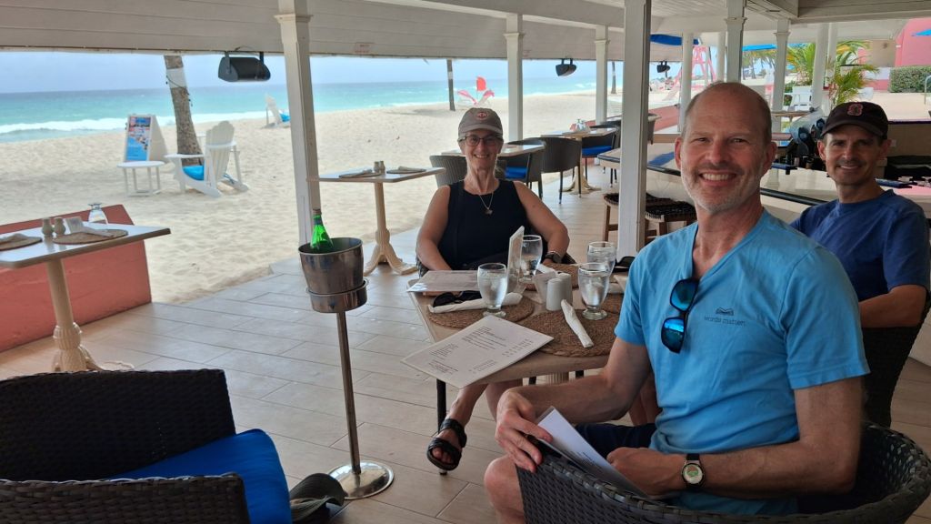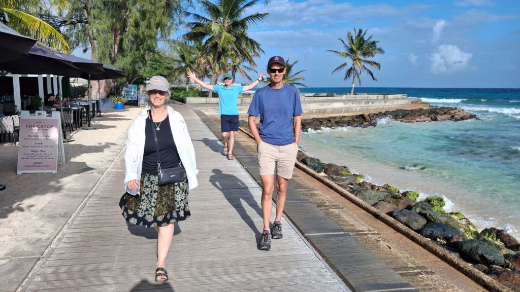 We leaned all in on the island vibe. Rented chairs and an umbrella for our morning swim and float in the waves (tried without too much success to body surf), had lunch next door on the beach, and then a long walk along the boardwalk almost all the way into Bridgetown. Dinner was outside which provided more people watching along the very popular St. Lawrence Gap walkway.